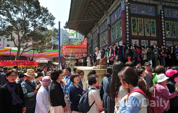 부처님 오신날(석가탄신일)을 기념하기 위해 방문한 참배객들로 붐비고 있다.