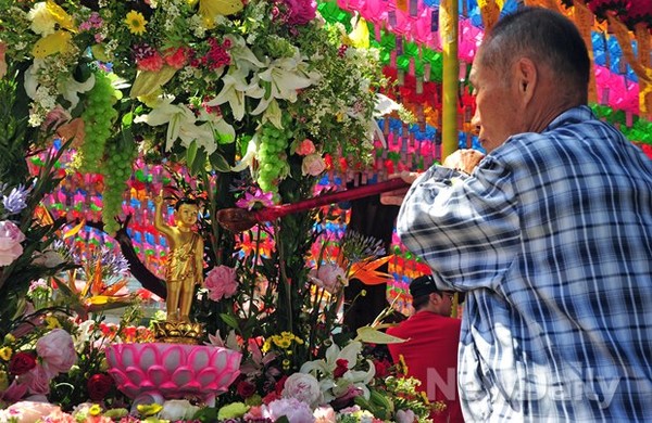 아기부처님을 씻기는 관불의식을 하고 있다.