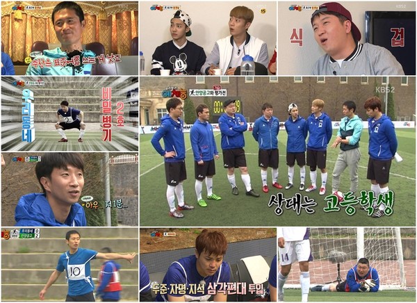 그런가 하면, 강호동은 안양공고 학생들의 슛을 3단 방어로 막아내며 골키퍼로서 가능성을 확인케 했고, 허허실실 웃음 짓던 이영표는 측면과 중앙을 가리지 않고 그라운드를 누볐다. 또한, 청소년 축구 국가대표 출신의 구자명은 몸을 아끼지 않는 활약을 펼치며 긴장감을 자아냈다.