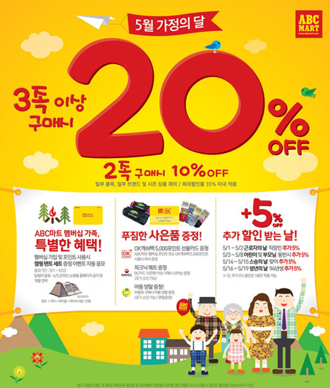 5월을 맞아 [가정의 달 이벤트]를 실시한다.오는 22일까지 ABC마트에서