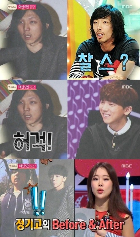 정기고의 충격적인 과거 사진이 공개됐다.지난 8일 방송된 MBC 새 파일럿 예능프로그램 '연애고시'에는 정기고, 손호준, 한정수, 이지훈, 장동민, 김동현, 공서영, 레이나, 차유람, 유예빈, 조서하가 출연했다.이날 방송에서는 정기고의 다이어트 전후 사진이 공개돼 눈길을 끌었다. 정기고는 걸그룹 씨스타 소유와의 '썸' 활동을 앞두고 1개월 반 동안 14kg을 감량했다.공개된 사진 속 정기고는 15kg 감량 전으로 장발에 수염을 기른 다소 초췌한 모습이었다. 이를 본 남자 게스트들은 "찰스 같다"고 놀려 웃음을 자아냈다.한편, MBC '연애고시'는 연애에 매번 실패하는, 연애가 너무 어려운 연애조난자들을 위한 솔로탈출 프로젝트. 비주얼, 스펙 모두 갖췄지만 반쪽을 찾지 못해 오랜 시간 솔로로 지내고 있는 사람들이 연애고시생이 되어 연애고시에 지원하는 프로그램이다.['연애고시' 정기고 과거사진, 사진=MBC '연애고시' 방송 캡처]