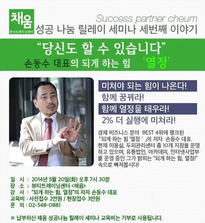 손동수 대표는 <채움> 성공 나눔 릴레이 세미나를 통해