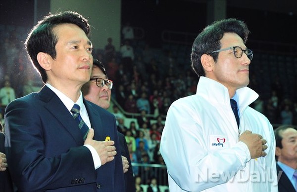 [포토]새누리당 경기도지사 후보 선출대회, 국민의례하는 두 예비후보