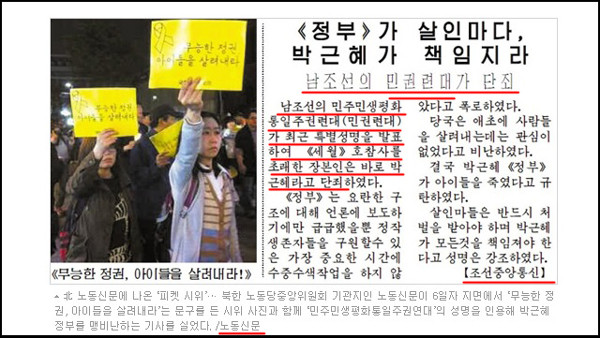 앞서 북한의 對南선전 웹사이트인 ‘우리민족끼리’는 지난 16일 <민중도 못 지키는 게 ‘정부’냐>라는 제목의 글을 통해 세월호 침몰에 대한 남한 정부의 대응을 우회적으로 비난했다.