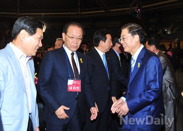 새누리당 김황식 예비후보가 서울 송파구 올림픽공원 체조경기장에서 열린