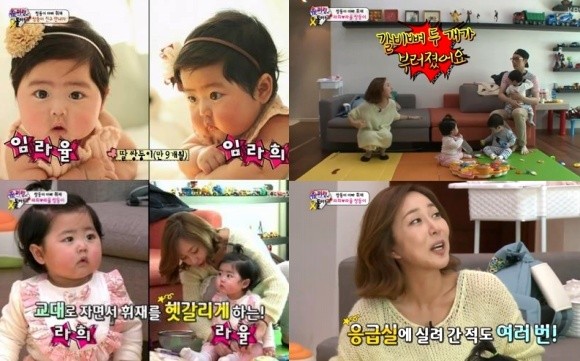 슈가 쌍둥이 임신 시절 갈비뼈가 부러졌다고 고백했다.지난 11일 방송된 KBS 2TV '해피선데이-슈퍼맨이 돌아왔다'에서 이휘재는 서언-서준 쌍둥이 아들과 함께 쌍둥이 자매를 기르고 있는 SES 출신 슈의 집을 방문했다.슈의 쌍둥이 딸 라희와 라율은 이휘재의 쌍둥이 아들보다 다소 포동포동하고 몸집이 컸다. 이에 이휘재는 몸무게가 얼마나 나가냐고 물었고, 슈는 "아이들이 10kg 정도 나간다"고 답했다.이어 "쌍둥이 임신을 알았을 때 기분이 어땠냐?"라고 이휘재가 묻자 슈는 "의사가 심장이 두 개라고 말해 어이가 없어 웃기만 했다"고 밝혔다.또한, 슈는 "내가 거의 만삭일 때 갈비뼈 두 개가 부러졌다. 그런데도 되게 활동적이라서 아들 임유랑 같이 놀이공원에 갔다"고 말해 이휘재를 놀라게 했다.슈 쌍둥이 딸 비화를 접한 네티즌들은 "슈 쌍둥이 딸 인형인 줄 알았다", "슈 대단하다", "슈 쌍둥이 딸 힘들게 낳았구나", "슈야말로 진정한 슈퍼맨이다", "슈 쌍둥이 딸 낳느라 너무 힘들었겠다" 등의 반응을 보였다.[슈 쌍둥이 딸, 사진=KBS2 '슈퍼맨이 돌아왔다' 방송 캡처]