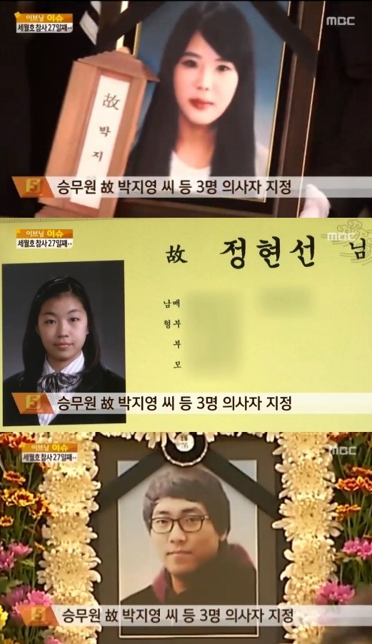 또, 연인 사이였던 김기웅 씨와 정현선 씨도 학생들의 구조를 돕고 선내에 남아 있는 승객들을 구하러 들어갔다가 목숨을 잃었다.