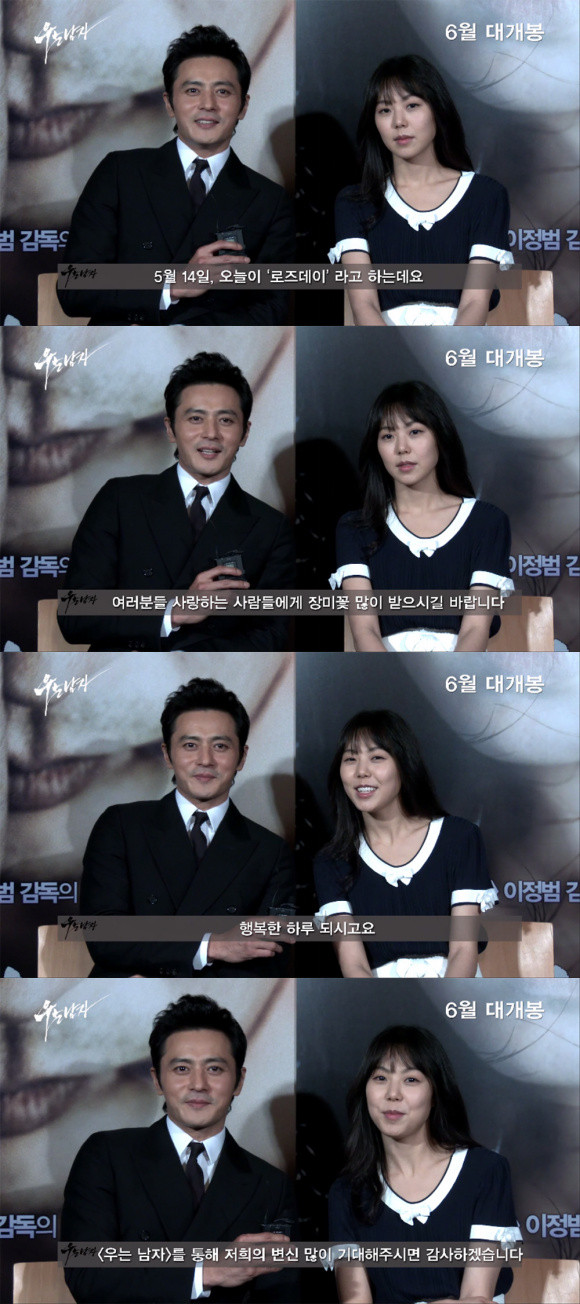 '우는 남자' 장동건과 김민희가 로즈데이를 맞아 특별한 인사를 전했다.영화 '우는 남자'(감독 이정범)에서 킬러와 타겟으로 만나 2014 가장 강렬한 케미스트리를 예고하고 있는 배우 장동건 김민희가 5월 14일 로즈데이를 맞아 팬들을 위한 특별 영상을 공개했다.대한민국을 대표하는 꽃미남, 꽃미녀답게 공개된 '로즈데이' 영상 속에는 달콤한 멘트들이 줄을 잇는다. 장동건은 "사랑하는 사람들에게 장미꽃 많이 받으시길 바란다"고 말했고, 김민희는 "행복한 하루 되시길 바란다"며 수줍은 미소로 화면을 달달하게 물들였다.또한, 관객들에게 '우는 남자'를 통해 파격 변신할 것을 예고해 보는 이들의 기대를 더하고 있다. 뜨거운 액션과 진해진 드라마로 오는 6월 관객들의 마음을 사로잡을 영화 '우는 남자'. 장미꽃보다 더 싱그럽고 달콤한 두 배우의 인사가 로즈데이를 더욱 달콤하게 만든다.한편, '우는 남자'는 단 한번의 실수로 모든 것을 포기하며 살아가던 킬러 곤(장동건)이 조직의 마지막 명령으로 타겟 모경(김민희)을 만나 임무와 죄책감 사이에서 갈등하며 벌어지는 액션 드라마. 6월 개봉 예정이다.[장동건 김민희 로즈데이 인사, 사진=CJ 엔터테인먼트]