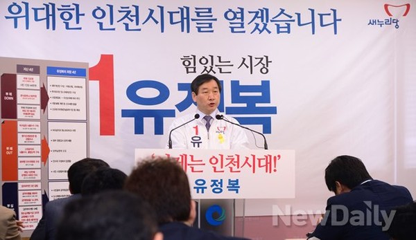 [포토]선거공약 밝히는 유정복 인천시장 후보
