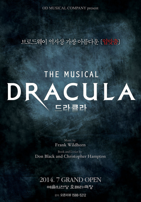 뮤지컬 '드라큘라'는 브램 스토커의 소설을 원작으로 하는 브로드웨이 뮤지컬로 아름답고 매혹적인 스토리에 프랭크 와일드혼 특유의 감미로우면서도 웅장한 선율이 더해진 불멸의 러브스토리.