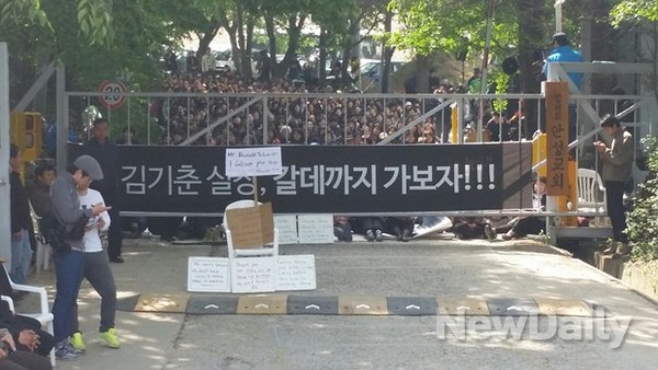 오전 10시 50분 현재 금수원 정문에는 500여명의 신도들이 집결해 찬송가를 부르며 만일의 사태에 대비하고 있다. 앞열에는 여성들과 사이사이 유모차도 보여 검찰이 강제 진입을 시도할시 부담이 될 것으로 예상된다.