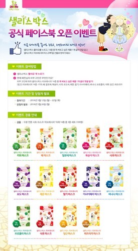 진행한다.이번 이벤트는 샐리스박스 페이스북을 방문해 좋아요를 누르고 [러브레시피 마스크 14종] 중
