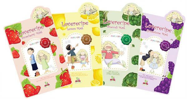 [러브레시피 마스크]는 베스트셀러 [파페포포]의 만남, 데이트, 오해와 화해, 행복으로 이어지는 감성 스토리를 14종의 제품에 담아 피부 수분 전달과 함께 고객들의 마음까지 촉촉하게