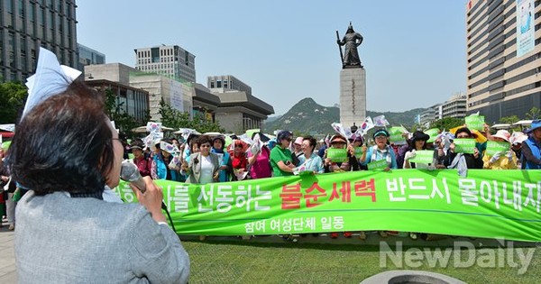 참여여성 21개 애국단체 회원들이 16일 오후 서울 광화문 광장에서
