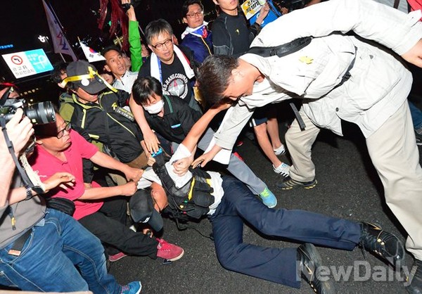 경찰 집기를 뺏는 등 과격한 행동을 보였다.