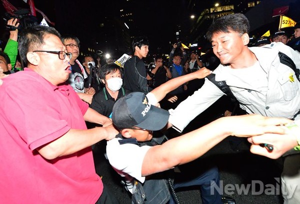 경찰 집기를 뺏는 등 과격한 행동을 보였다.대한민국 경우회와 고엽제전우회를 비롯한 애국단체들도 촛불집회와 비슷한 시각