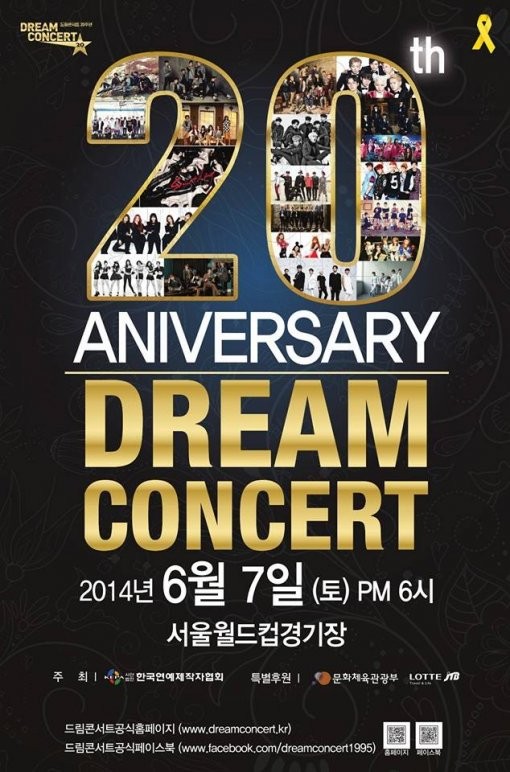 올해로 개최 20주년을 맞이하는 드림콘서트는 K-POP 가수(소녀시대, EXO, 비스트, 포미닛, 비투비, 에이핑크, B1A4, 걸스데이, 티아라, 스피드, 빅스, 유키스, 레인보우, 블락비, 달샤벳, 탑독, 포커즈, GOT7, 소년공화국, 타이니지, 제국의아이들, 소리얼, 헤일로, 립서비스, 엠파이어, 씨클라운, 오프로드, 엔소닉, 베스티, 루커스, 세이예스, 제이준) 32개 팀과 스페셜게스트 YB까지 드림콘서트 20주년의 역사적인 무대를 장식할 출연자 명단을 최종 확정했다.