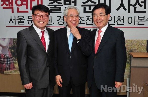문용린 서울교육감 후보, 조전혁 경기교육감 후보, 이본수 인천교육감 후보가 19일 오전 경기도수원 조전혁 후보 사무실에서 만나 [수도권 보수대연합 공동선대위] 발족을 결의했다.