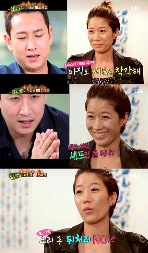 배우 전혜진이 남편 이선균에게 독설을 날렸다.이선균은 지난 19일 방송된 SBS '힐링캠프, 기쁘지 아니한가'(이하 '힐링캠프')에 출연해 특유의 솔직하고 유쾌한 입담을 뽐냈다.이날 '힐링캠프' MC들에게 노가리 라면을 대접하고 있던 이선균에게 "또 라면 끓이느냐"며 전혜진의 목소리가 흘러나와 그를 깜짝 놀라게 했다.전혜진은 "드라마 '파스타'가 끝난 지 언제인데 아직도 셰프라고 착각하고 있어"라며 "한 번 드셔보셔야 할 것 같다. 나아 같은 반응이 나올 것이다"고 밝혔다.이어 "너가 아직 셰프인 줄 아니?"라며 돌직구를 날리는가 하면, "이선균은 라면에 각종 해물, 파, 노가리 등을 넣는다. 라면 하나 끓이면서 왜 이렇게 냄비를 많이 쓰느냐. 요리 후 뒤처리를 하지 않는다"고 불만을 토로했다.'힐링캠프' 전혜진 독설을 접한 네티즌들은 "힐링캠프 전혜진 완전 솔직하네", "두 사람 부부가 아니라 애인 같아", "힐링캠프 전혜진 돌직구에 이선균 너덜너덜", "이선균 전혜진 싸우면 살벌할 듯", "힐링캠프 전혜진 빵 터졌다" 등의 반응을 보였다.[힐링캠프 전혜진, 사진=SBS '힐링캠프' 방송 캡처]