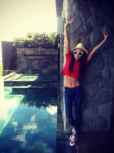 멤버 씨엘이 찍은 사진 속 산다라는 붉은색 티셔츠와 딱 붙는 스키니진을 입고 시크한 표정으로 포즈를 취하고 있다. 특히 시원하게 드러난 그녀의 뚜렷한 복근이 섹시해 보인다. 통통튀는 언변과 아기같은 이미지로 대중들에게 알려진 산다라박이기에 예상과 다른 탄탄한 복근이 더욱 눈에 띄는 것.