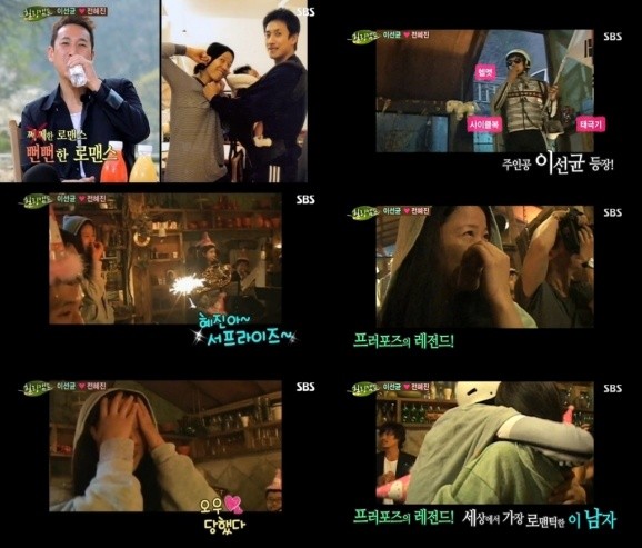 배우 이선균 애국가 프러포즈 영상이 공개됐다.이선균은 지난 19일 방송된 SBS '힐링캠프'에 출연해 아내 전혜진과의 첫 만남부터 결혼하기까지 우여곡절 많았던 러브스토리를 모두 털어놨다.이날 이선균은 "결혼을 앞두고 프러포즈를 하려면 제대로 해야겠다는 마음이 들었다. 전혜진 오빠가 운영하는 카페를 통째로 빌려서 서프라이즈 파티를 준비했다. 아내의 친구들을 섭외하고 브라스밴드도 불렀다.이어 "헬멧에 싸이클복을 입고 태극기를 들고 등장했다. 국기에 대한 맹세를 한 거나 마찬가지다. 전혜진에 대한 맹세로.."라고 덧붙였다.잠시 후 이선균 프러포즈 영상이 공개돼 눈길을 끌었다. 이선균은 사이클복을 입고 헬멧을 쓴 채 한 손에는 태극기를 들고 브라스밴드의 '국기에 대한 경례' 반주에 맞춰 깜짝 등장했고, 아내 전혜진은 "당했다"라며 감동의 눈물을 흘렸다.이선균은 아내 전혜진을 향해 "조국과 민족의 무궁한 영광을 위하여 몸과 마음을 바쳐 전혜진에게 좋은 남편과 배 안에 있는 아기에게 좋은 아빠가 될 것을 굳게 맹세합니다"라고 외쳤으며, 두 사람은 애틋한 포옹을 나눴다.[이선균 전혜진 프러포즈 영상 공개, 사진=SBS '힐링캠프' 방송 캡처]