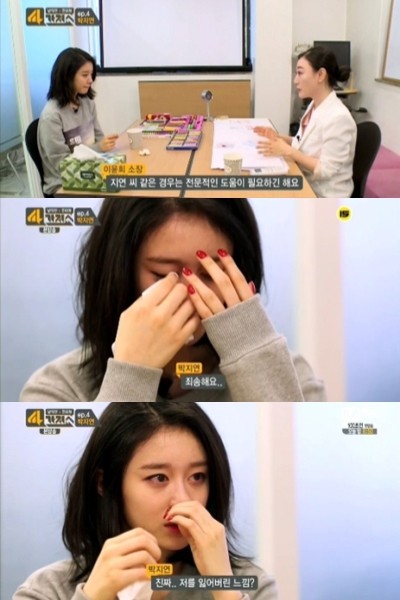 최근 솔로 앨범으로 화제의 선상에 올라있는 티아라 지연이 방송 중에 눈물을 흘려 네티즌의 호기심을 자극한다.20일 방송된 Mnet '발칙한 인터뷰 4가지 쇼'에서 지연은 심리테스트를 받던 중 눈물을 쏟았다. 이는 상담가로부터 "현재 전문적 도움이 필요하다. 지금 많이 힘들어하고 있으며 너무 기울어져 있다. 나만의 힐링 장소, 좋은 사람과의 관계가 필요하다"라는 이야기를 들었기 때문.
