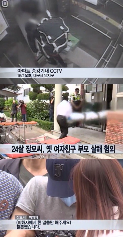 앞서 대구 달서경찰서는 20일 오전 9시쯤 이별을 종용했다는 이유로 전 여자친구의 부모를 무참히 살해한 혐의로 용의자 장 모(25)씨를 체포했다. 경찰에 따르면 장 씨는 권씨의 딸과 사귈 당시 술을 마시고 여자친구에게 상습적으로 폭행을 가했고, 이 때문에 권 씨 부모는 장 씨 부모를 찾아가 "우리 딸을 만나지 못하게 해달라"고 요구한 것으로 알려졌다.