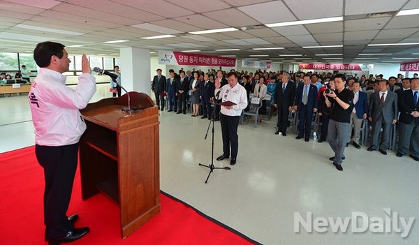 새누리당 당원과 후보들이 참석했다.발대식에 앞서 가진 기자회견에서 새누리당 유정복 인천시장 후보는