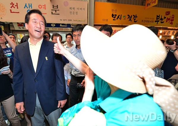 정몽준 새누리당 서울시장 후보가 22일 오후3시 서울 광장시장을 방문해 유권자들을 만났다.