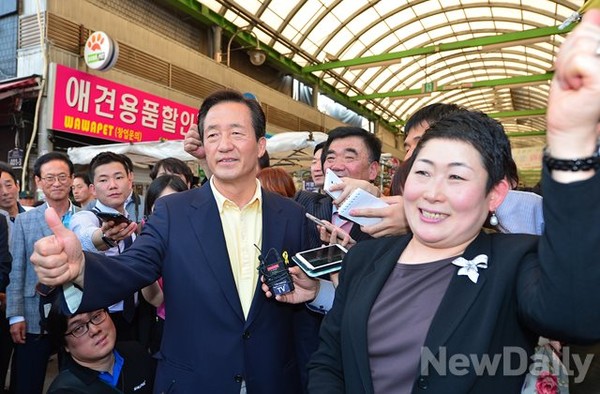 정몽준 새누리당 서울시장 후보가 22일 오후3시 서울 광장시장을 방문해 유권자들을 만났다.
