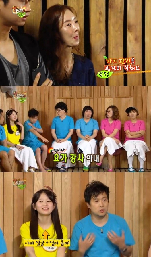 박남정 아내의 미모가 눈길을 사로잡았다.지난 22일 방송된 KBS 2TV '해피투게더 시즌3'에는 '가정의 달' 특집으로 박남정과 딸 박시은, 김대희와 딸 김현오, 정종철과 아들 정시후가 출연해 유쾌한 입담을 뽐냈다.이날 '해피투게더' 촬영장을 찾은 박남정의 아내 허은주 씨는 40대의 나이가 믿기지 않을 정도로 연예인 부럽지 않은 동안미모를 자랑했다.이에 신봉선은 "저보다 더 어려 보인다"고 부러움을 드러냈고, 박남정은 "아내가 요가강사라 자기관리를 굉장히 잘 한다"고 말했다.한편, 시청률조사회사 닐슨코리아에 따르면 22일 방송된 '해피투게더3'는 전국기준 6.2%의 시청률을 기록했다. 이는 지난 주 방송분이 기록한 6.1%보다 0.1%포인트 상승한 수치다.[박남정 아내, 사진=KBS2 '해피투게더' 방송 캡처]