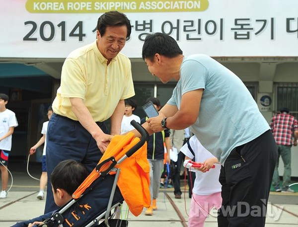 2014 심장병 어린이 돕기 줄넘기대회에 참석해 지나가던 시민과 인사를 나누고 있다.