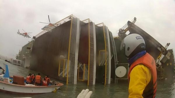 權 경장의 헬기는 左舷 쪽으로 선회하였다. 구명재킷을 입고 물에 떠 있는 사람과 船側(선측), 船尾(선미)의 난간을 붙들고 있는 사람들이 보였다. 배는 70도 이상 기울었고 좌현은 5층까지 물에 잠기고 있었다. 권 경장 팀은 좌현 쪽에서 구조를 하기로 결정하였다.