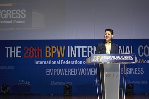 <성주그룹> 김성주 회장이 지난 23일 제주국제컨벤션센터에서 열린 <전문직여성세계연맹(BPW·회장 프레다 미리클리스, 한국연맹 회장 이인실)>의 28번째 총회에서 [글로벌 여성 리더십상]을 수상하고 기조연설을 맡았다.김성주 회장은 이 날 한국의 대표적인 여성 CEO로서의 경험과 견해를 전하며 “20여 년 전 회사 창립 시, 남성 중심적이었던 사회에서 여성 대표로서 일어서기가 쉽지는 않았다. 여성 CEO에 대한 반감도 있었지만, 환경에 쉽게 적응하고 포용할 수 있는 여성만의 강점을 적극 활용해 패션 브랜드 분야에서 성공할 수 있었다”고 말했다.