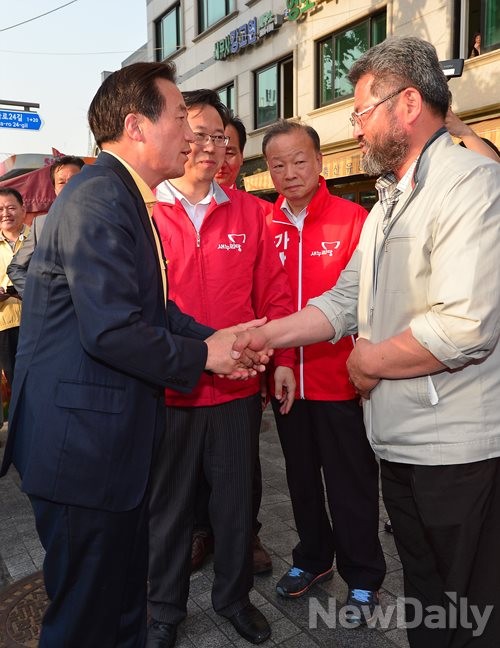 • 정몽준 새누리당 서울시장 후보가 27일 오후 서울 성동구 마장축산물 시장을 방문해