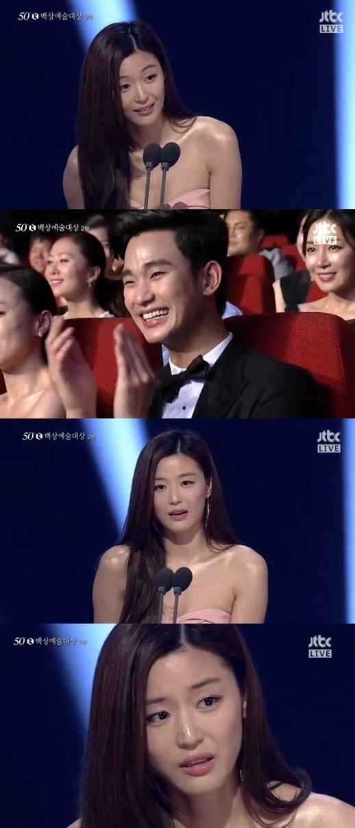 전지현은 27일 오후 서울 경희대 평화의전당에서 진행된 2014년 제50회 LF 백상예술대상에서 '별에서 온 그대'로 TV부문 대상을 거머쥐었다. 이는 1999년 백상예술대상에서 신인여우상을 받은 지 15년 만이다.