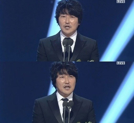 송강호는 무대에서 트로피를 받은 후 영화 제작에 참여했던 모든 이들에게 공을 돌리는 겸손한 태도를 보였다.