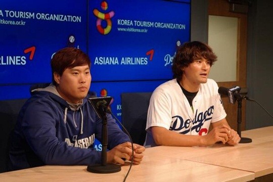 박찬호 시구 전 류현진과 함께 찍은 사진이 공개됐다.28일(한국시간) LA다저스 공식 트위터에는 '코리아 전설이자 에이스였던 박찬호와 류현진'이라는 글과 함께 사진이 올라왔다.공개된 사진 속 박찬호는 LA다저스 유니폼을 입고 류현진과 나란히 앉아 인터뷰에 응하고 있다. 특히, 선배 박찬호 옆에서 다소 긴장한 류현진의 모습이 눈길을 끈다.이날 박찬호는 미국 캘리포니아주 로스앤젤레스 다저스타디움에서 열린 '2014 메이저리그' LA 다저스와 신시내티 레즈와의 경기에 앞서 시구를 던졌다. 류현진도 포수 자격으로 마운드에 올라 선배 박찬호의 공을 받았다.박찬호 시구는 한국관광공사 주관으로 개최된 '코리아 나이트'(한국의 밤) 행사의 일환으로 이뤄졌으며, 경기 시작 1시간30분 전부터 다저스타디움 우측 외야 입구에서 사인회를 열었다. 30분 정도 예정된 사인회는 많은 팬들이 몰려 다음 일정인 기자회견이 지연되기도 했다.한편, 박찬호 시구를 접한 네티즌들은 "박찬호 시구 완전 멋있어요", "훈한한 선후배 모습 보기 좋다", "박찬호 시구 류현진은 포수 잊지 못할 명장면", "박찬호 감회가 새롭겠다", "박찬호 투구실력 여전해", "박찬호 시구 명불허전" 등의 반응을 보였다.[박찬호 시구, 사진=LA 다저스 트위터 캡처]