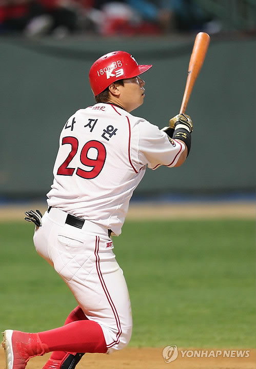 28일 광주 챔피언스필드에서 열린 두산베어스와 KIA 타이거즈의 경기에서 나지완은 3회말 1사 주자가 없는 상황에서 두산 선발 이재우를 상대로 좌익수를 넘기는 솔로 홈런을 쏘아 올렸다.
