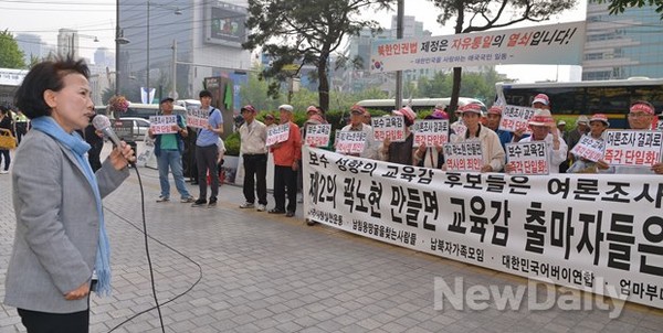 이날 대한민국어버이합, 엄마부대 봉사단 등을 포함한 8개 애국단체들은 비정상적인 대한민국의 교육을 정상화하기 위해서는 후보 단일화로 흩어지는 표심을 잡아야 한다며 현 서울시 보수 진영 교육감 후보들의 여론조사를 거친 후보 단일화를 촉구했다.