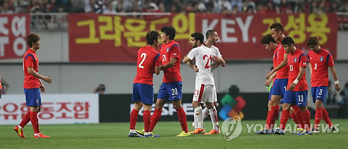 한국 축가대표팀은 28일 오후 8시 서울 월드컵경기장에서 열린 튀니지와의 '2014 브라질 월드컵' 평가전에서 전반 43분 튀니지 공격수 다우아디에게 결승골을 내주며 0-1로 패배했다.