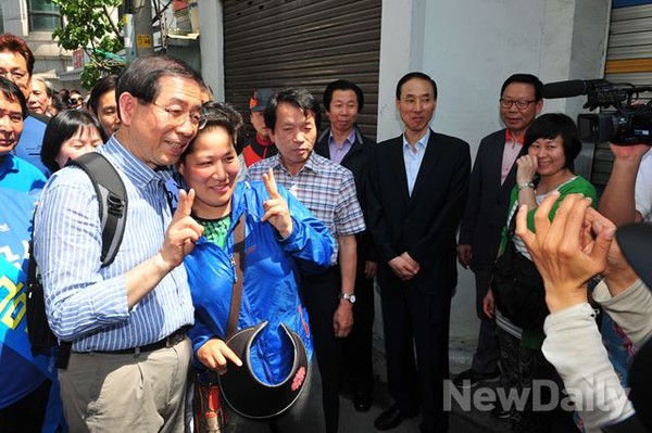 박원순 새정치민주연합 서울시장 후보가 29일 오후 서울 용산구 청파동주민센터 인근에서 거리유세를 하고 있다.