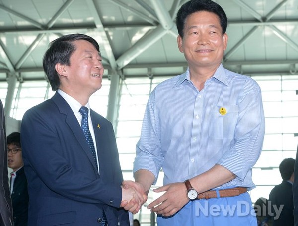 새정치민주연합 송영길 인천시장 후보와 새정치민주연합 안철수 공동대표가