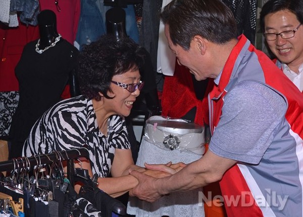 [포토]옷가게 상인도 '안녕하세요!', 웃으며 인사하는 정몽준 후보