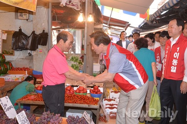 이날 정몽준 후보는 유세 차량 앞에서 연설을 마친 뒤 바닥에 엎드려 시민들에게 큰절 하는 것을 시작으로, 신림6동 인근 시장을 돌며 지지를 호소했다.