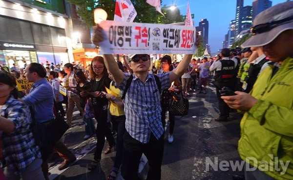 촛불집회 후 참가자들은 청계광장을 출발해 광교사거리와 보신각을 지나 종로 2가와 을지로 2가를 통해 시청광장으로 행진을 이어갔다. 시청광장에 도착한 참가자들은 미리 준비한 촛불리본 퍼포먼스를 선보였다. 도심을 가로지르는 행진으로 일대 교통체증이 심하게 나타나자 대중교통을 이용하던 시민들은 불만을 나타내기도 했다.일부 집회 참가자들은 "문제는 청와대다"가 적힌 유인물을 돌리며 청와대 행진을 주장했다. 해산하지 않고 집회를 이어 가던 참가자들과 경찰이 대치하기도 했지만 충돌은 일어나지 않았다. 이 과정에서 폭력을 행사한 참가자는 경찰에 연행되기도 했다.