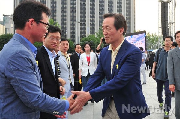 새누리당 정몽준 서울시장 후보가 31일 오후 서울 종로구 광화문 광장에서 문화체육관광부 주최로 열린 [언어문화개선을 위한 100만 선플 자원봉사단 출범식 및 선플음악회]에 참석했다.