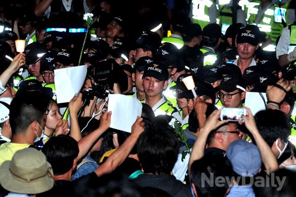 촛 불집회 후 참가자들은 청계광장을 출발해 광교사거리와 보신각을 지나 종로 2가와 을지로 2가를 통해 시청광장으로 행진을 이어갔다. 시청광장에 도착한 참가자들은 미리 준비한 촛불리본 퍼포먼스를 선보였다. 도심을 가로지르는 행진으로 일대 교통체증이 심하게 나타나자 대중교통을 이용하던 시민들은 불만을 나타내기도 했다.일부 집회 참가자들은 "문제는 청와대다"가 적힌 유인물을 돌리며 청와대 행진을 주장했다. 해산하지 않고 집회를 이어 가던 참가자들과 경찰이 대치하기도 했지만 충돌은 일어나지 않았다. 이 과정에서 폭력을 행사한 참가자는 경찰에 연행되기도 했다.