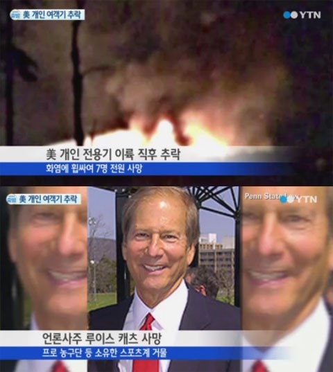 미국 매사추세츠주에서 개인전용기가 추락해 언론사 소유주 등 탑승자 7명 전원이 사망했다.1일(현지시간) CNN 등 외신의 보도에 따르면 지난달 31일 오후 9시40분께 걸프스트림 제트 여객기 1대가 미국 보스턴 근교의 민군 공용 비행장인 핸스컴 필드에서 애틀랜틱시티를 향해 이륙하자마자 근처 숲속에 추락해 폭발했다.이 추락사고로 언론사인 필라델피아 인콰이어러의 공동 소유주인 루이스 캐츠를 포함해 사고기에 타고 있던 7명 모두 숨진 것으로 확인됐다.캐츠는 프로 농구단 뉴저지 네츠와 프로 아이스하키팀 뉴저지 데빌스를 소유했던 미국 스포츠계 거물이다.연방항공청(FAA)은 현장에 사고조사반을 보내 정학한 추락 원인을 조사하고 있다.미국 개인전용기 추락 소식을 접한 네티즌들은 "미국 개인전용기 추락 어쩌다가..", "가족들 너무 갑작스럽겠다", "미국 개인전용기 추락 안타깝네", "요즘 사건 사고가 많은 듯", "미국 개인전용기 추락 충격이다" 등의 반응을 보였다.[미국 개인전용기 추락, 사진=YTN 영상 캡처]