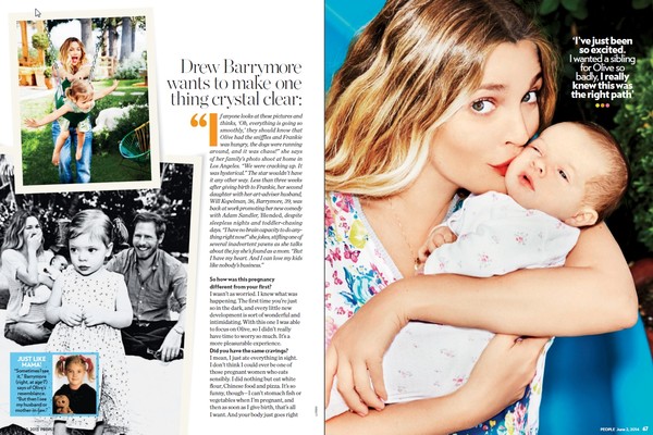 할리우드 배우 드류 베리모어가 지난 4월 두 번째 딸을 출산했다. 그는 최근 피플지와의 인터뷰에서 “이번엔 전혀 걱정이 되지 않았다”고 말하며 첫 번째 출산과 달리 여유로웠음을 밝혔다. 첫째인 올리브에 집중하느라고 걱정할 여유가 없었다는 그녀는 둘째가 생겨 행복하고 기쁘다고 밝혔다.드류 베리모어는 샤넬의 전CEO의 아들인 윌 코펠만과 지난 2012년 결혼해 딸 올리브 베리모어 코펠만을 두고 있다. 이번에 출산한 딸의 이름은 프랭키이다. 드류 배리모어는 E.T 에 출연한 바 있는 아역스타 출신이다.